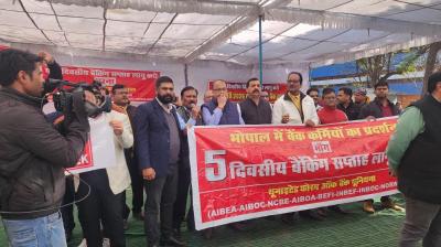 भोपाल में बैंक कर्मियों का जोरदार धरना प्रदर्शन पाँच दिवसीय बैंकिंग सप्ताह लागू करने की मांग बुलंद