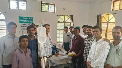 युवा वाहिनी के सदस्यों ने प्राथमिक स्वास्थ्य केंद्र में मरीजो को फल बांटे