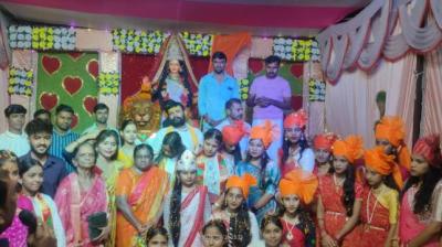 तिनका समाज के बच्चो ने दिखाया चोकने बाले स्टंट ,दुर्गा वाहिनी द्वारा शस्त्र पूजन तलवार बाजी दिखाई