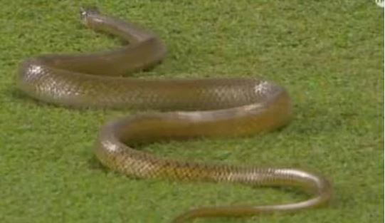 खास बात यह रही कि सांप को बिना किसी परेशानी के मैदान से बाहर निकाल लिया गया और किसी के घायल होने की कोई खबर नहीं है। इसका वीडियो सोशल मीडिया पर वायरल हो रहा है। हालांकि, एक पल के लिए सांप देखकर अफरा-तफरी भी मच गई थी।