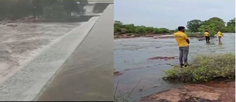 तेज बहाव में बहे युवक ने पेड़ पकड़कर बचाई जान, एक साथी अब भी लापता