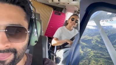 जैकी भगनानी ने जो वीडियो शेयर किया है, उसमें देखा जा सकता है कि वह हेलीकॉप्टर पर अगली सीट पर बैठे हैं। ऐसा लगता है कि वह हेलीकॉप्टर उड़ा रहे हैं।। वह कैमरा घुमा कर दिखाते हैं, तो बाहर पहाड़ दिखते हैं। जैकी जब पीछे की तरफ कैमरा घुमाते हैं, तो उनकी पत्नी रकुल प्रीत सिंह बैठी नजर आती हैं। वह कैमरे को देखकर मुस्कुराती हैं और रिएक्ट करती हैं। वीडियो शेयर करते हुए जैकी भगनानी ने दिल वाले इमोजी बनाए हैं।