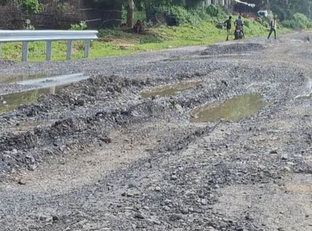 NH-39 पर सड़क धंसने से राहगीर परेशान, सुरंग जैसी खाई बनी बड़ा खतरा