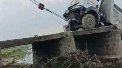 छतरपुर में बड़ा हादसा: रेत से भरे ओवरलोड ट्रक के गुजरते ही पुल ढहा