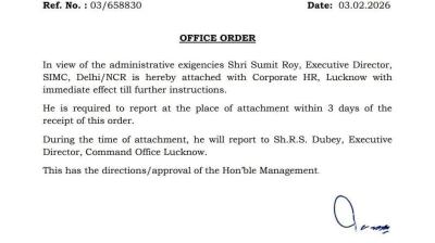 लखनऊ/नई दिल्ली। सहारा इंडिया परिवार में एक अहम प्रशासनिक बदलाव के तहत सहारा मीडिया के हेड और सीईओ सुमित राय को उनके पद से हटाकर सहारा इंडिया के कमांड ऑफिस,...