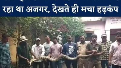 रेस्ट हाउस में घुसा विशाल अजगर: शिकार की तलाश में मचाया हड़कंप, रेस्क्यू के बाद दिखा भयावह रूप, उठाने में लगे दो लोग