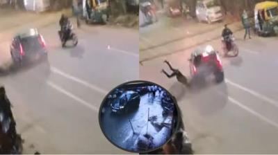 तेज रफ्तार में काली शीशे वाली कार का कहर, नाबालिग ने 300 मीटर तक मारी टक्कर पर टक्कर, 10 वाहन क्षतिग्रस्त, ट्रैफिक पुलिसकर्मी बोनट पर लटका