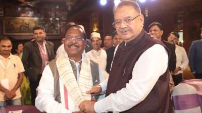 छत्तीसगढ़ के कृषि मंत्री रामविचार नेताम की उत्तराखंड के कृषि मंत्री गणेश जोशी से सौजन्य भेंट