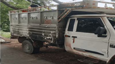चलते पिकअप में अचानक लगी भीषण आग, कूदकर लोगों ने बचाई जान