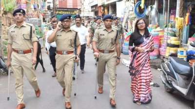 दुर्ग पुलिस ने निकला फ्लेग मार्च...
