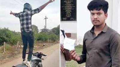 चलती बाइक पर युवक ने किया खतरनाक स्टंट, पुलिस ने काटा चालान
