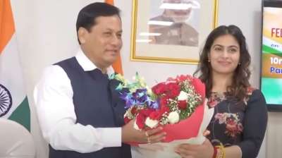 मनु भाकर के शानदार प्रदर्शन पर सर्बानंद सोनोवाल ने किया सम्मानित, 10 लाख का पुरस्कार दिया