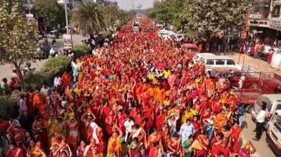 मधेश्वर महादेव धाम, शिव महापुराण कलश यात्रा में 15 हजार से अधिक महिलाएं हुई शामिल, लाखों श्रद्धालु आ रहे कथा सुनने