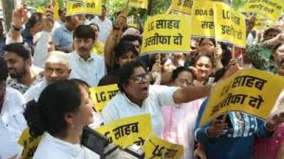 राजनिवास पर आम आदमी पार्टी का प्रदर्शन नाले में मां-बेटे की मौत का है मामला