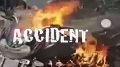 क्रेटा कार और बाइक के हादसे में दोनों ड्राइवर ज़िंदा, गाड़ियां हुईं आग का शिकार