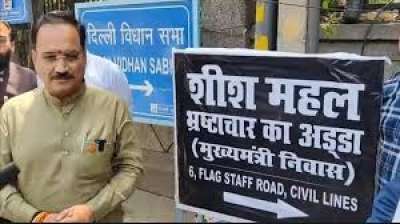 नई दिल्ली । दिल्ली भाजपा के कार्यकर्ताओं ने विधानसभा के पास शीश महल भ्रष्टाचार का अड्डा (मुख्यमंत्री निवास) का बोर्ड लगाकर मुख्यमंत्री के इस्तीफे की मांग की। प्रदेश अध्यक्ष वीरेंद्र...